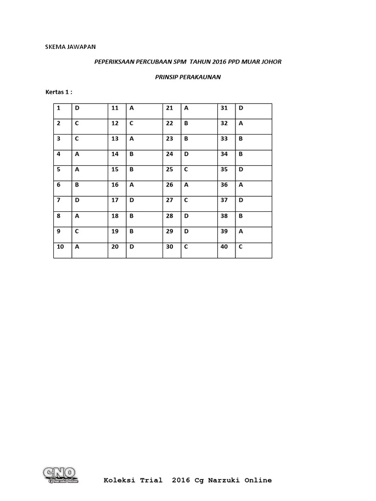 3756 Jawapan Ppa Trial Spm 2016 Muar Johor Pdf Skema Jawapan Peperiksaan Percubaan Spm Tahun 2016 Ppd Muar Johor Prinsip Perakaunan Kertas 1 1 D 11 A Course Hero