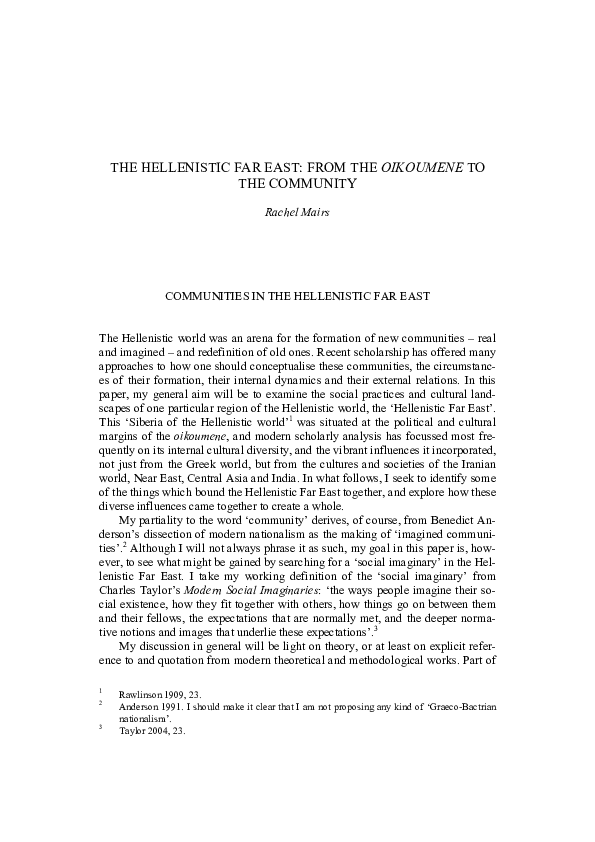 Pdf The Hellenistic Far East From The Oikoumene To The Community Rachel Mairs Academia Edu